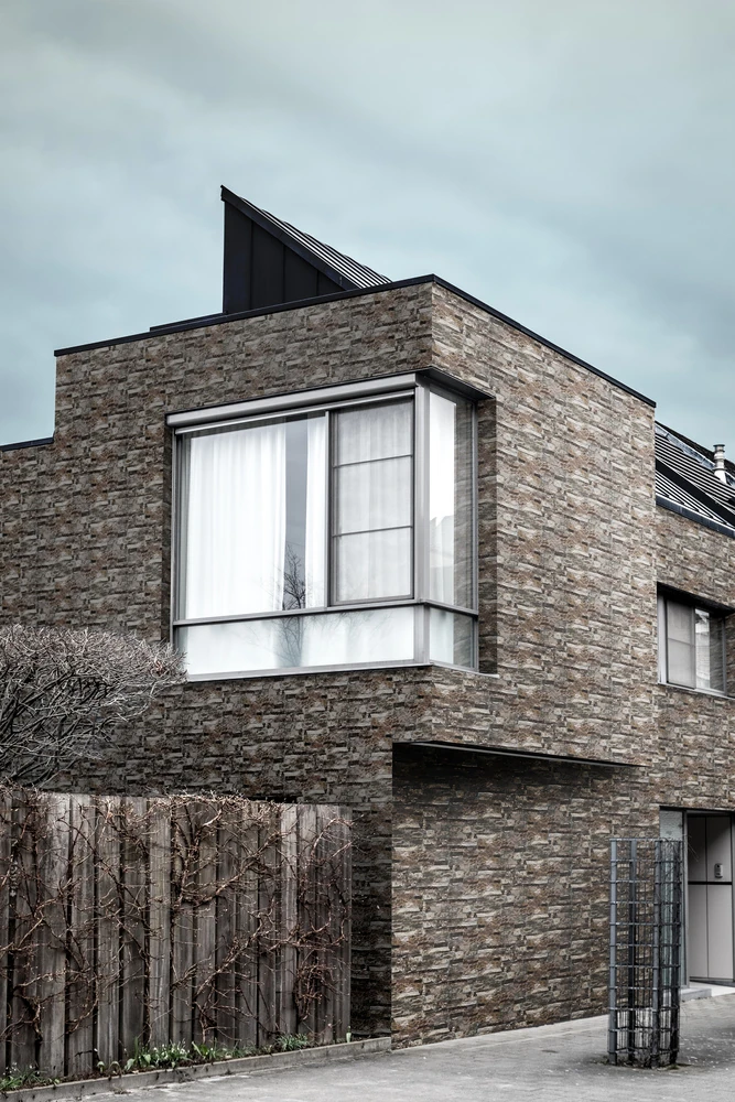 Mavat Rust charakteryzuje się subtelną, poziomą strukturą oraz naturalną paletą beżowo-brązowych odcieni, idealnie dopasowaną do nowoczesnej i minimalistycznej architektury. Regularny rytm płytek podkreśla geometryczną formę elewacji i ścian dekoracyjnych, nadając przestrzeni elegancki, uporządkowany charakter.