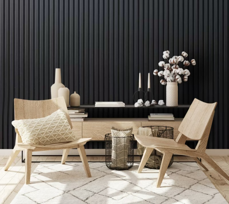 Kontrastowy czarny filc nie tylko uwydatnia kolor drewna, ale pełni również funkcję akustyczną – skutecznie pochłania dźwięki, poprawiając komfort użytkowania pomieszczenia. To rozwiązanie idealne zarówno do wnętrz nowoczesnych, skandynawskich, jak i klasycznych – świetnie sprawdzi się w salonach, sypialniach, biurach oraz przestrzeniach komercyjnych.