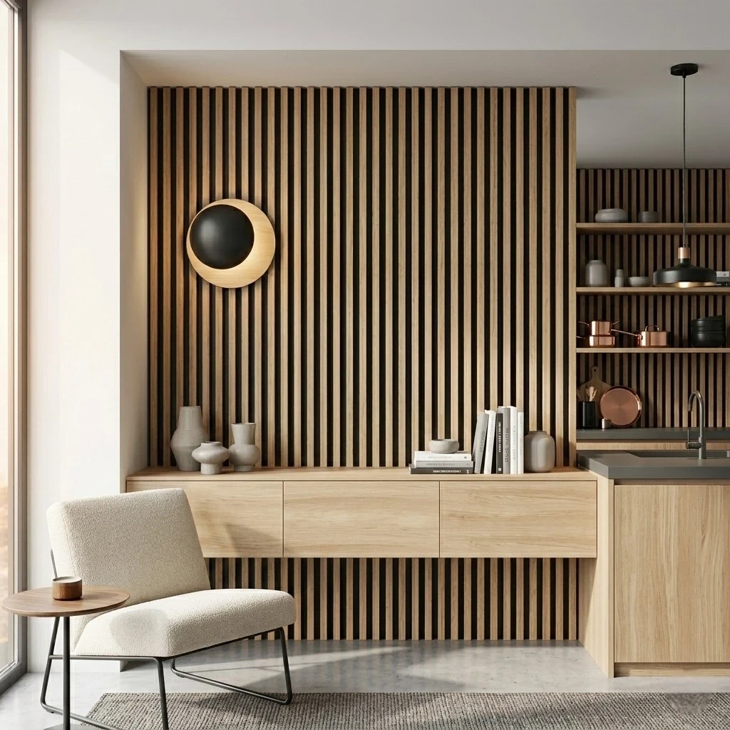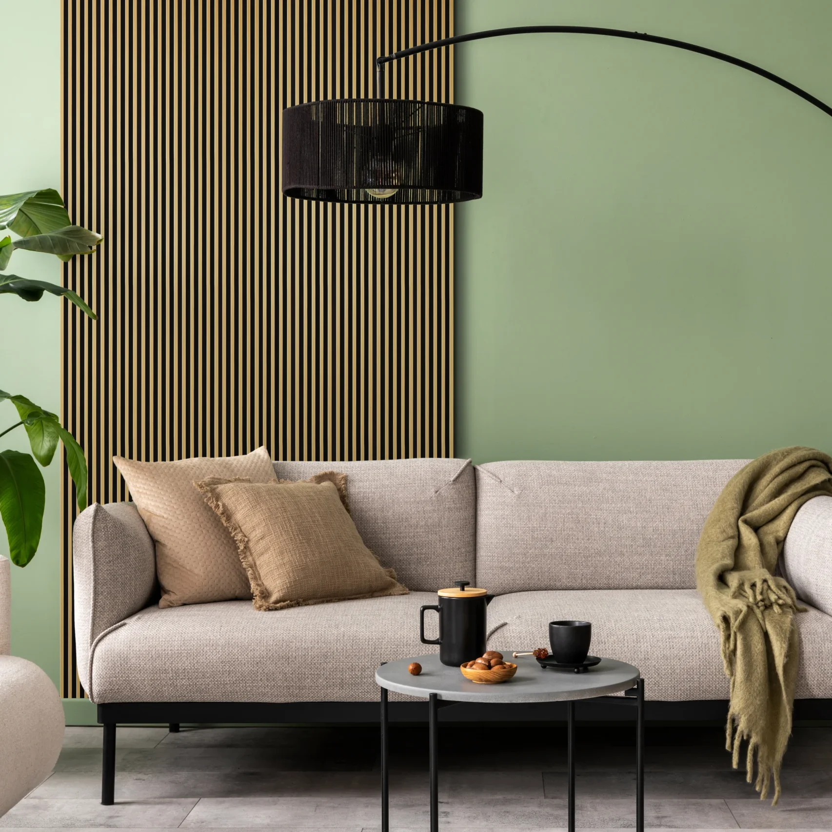 LINEO STRIPE to nowoczesne lamele ścienne 3D marki FLLOW, zaprojektowane z myślą o szybkiej i efektownej metamorfozie wnętrza. Jasny dekor dębu w połączeniu z czarnym tłem podkreśla rytm lameli i nadaje ścianom elegancki, architektoniczny charakter. Panele wprowadzają do pomieszczenia głębię, porządek wizualny i przytulność, jednocześnie poprawiając akustykę przestrzeni.