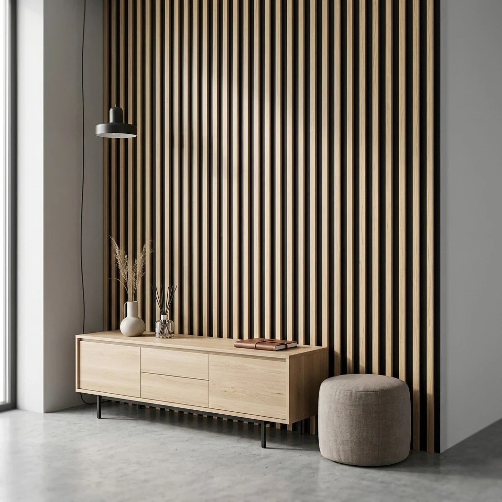 Panele wykonane są z lekkiego polistyrenu z okleiną drewnopodobną, dzięki czemu są łatwe w montażu i odpowiednie także na ściany z karton-gipsu. LINEO STRIPE sprawdzi się w salonie, sypialni, przedpokoju, biurze czy przestrzeniach komercyjnych, pasując do aranżacji skandynawskich, loftowych i nowoczesnych.