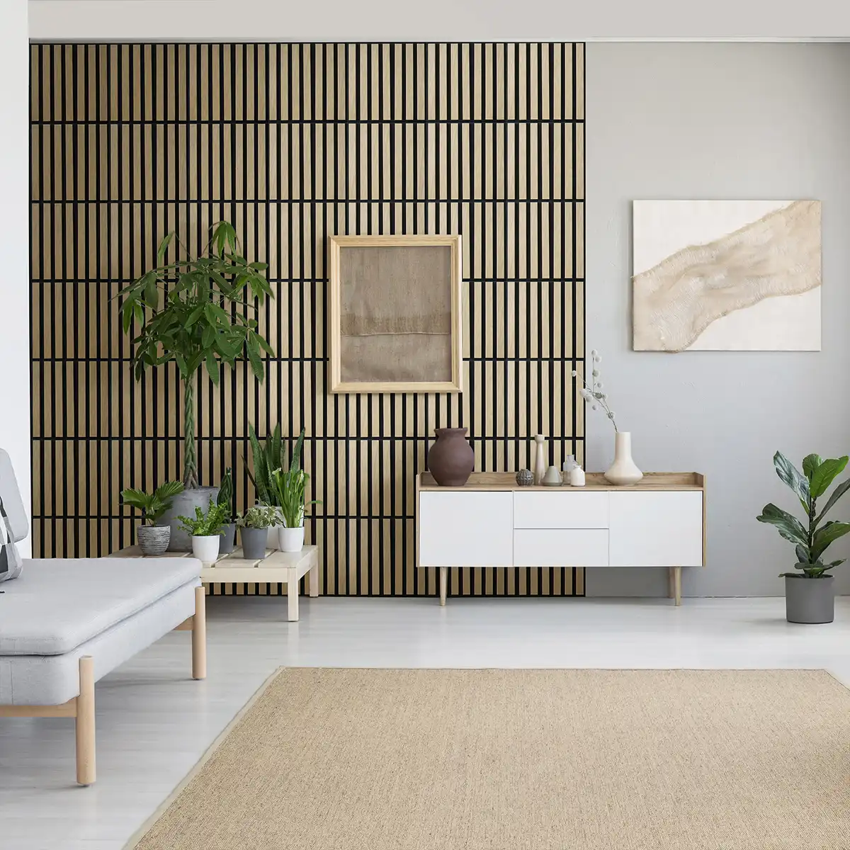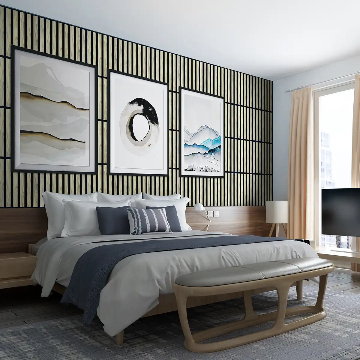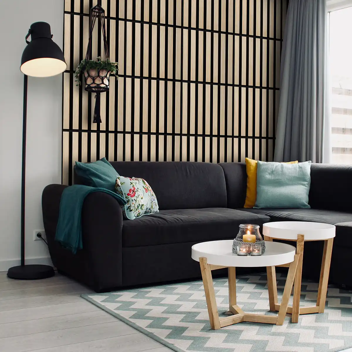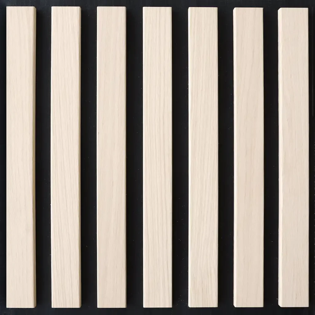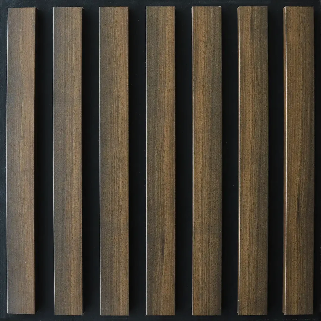 Nowoczesne panele dekoracyjne wykonane z 7 mm czarnego filcu i okleinowanych listew MDF o szerokości 45 mm. Zapewniają świetne właściwości akustyczne i elegancki, minimalistyczny wygląd. Modułowa forma pozwala tworzyć różnorodne kompozycje dopasowane do każdego wnętrza. Idealne do domów, biur i przestrzeni komercyjnych. Prosty montaż, ponadczasowy efekt.
