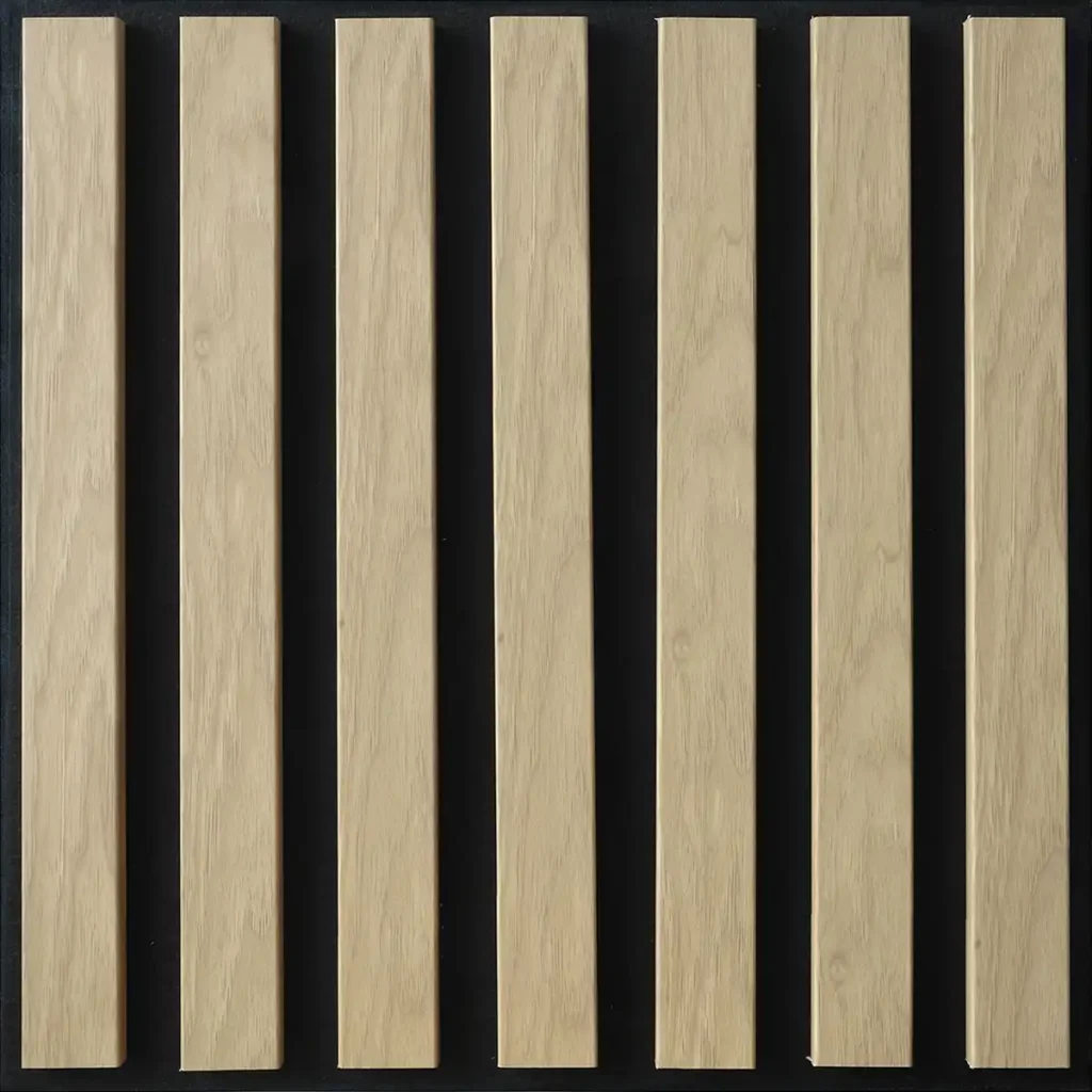 Lamele ścienne na filcu 50 × 50 cm to nowoczesne i estetyczne rozwiązanie do aranżacji wnętrz, które łączy funkcjonalność z minimalistycznym designem. Panel składa się z 7 mm czarnego filcu o właściwościach dźwiękochłonnych oraz z eleganckich listew MDF pokrytych okleiną, o szerokości 45 mm każda. Taka kombinacja zapewnia zarówno walory akustyczne, jak i wizualne.