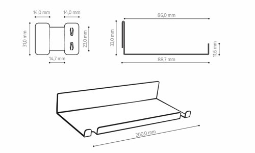 Półeczka została zaprojektowana do montażu na panelach lamelowych o grubości do 14 mm, stanowiąc praktyczne rozszerzenie ich zastosowania. Łączy nowoczesny design z funkcjonalnością, podnosząc walory użytkowe i dekoracyjne całej aranżacji.