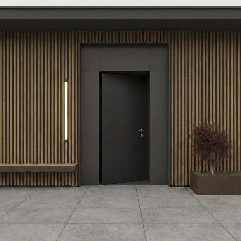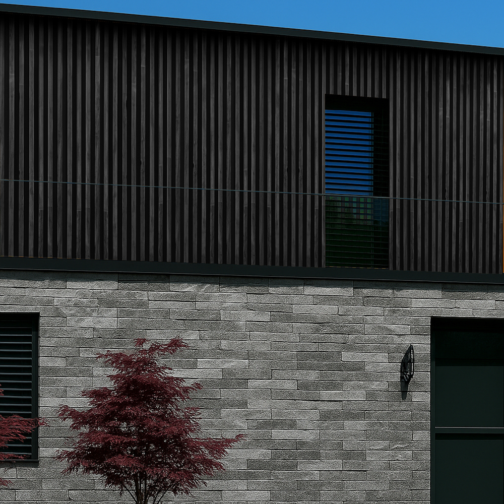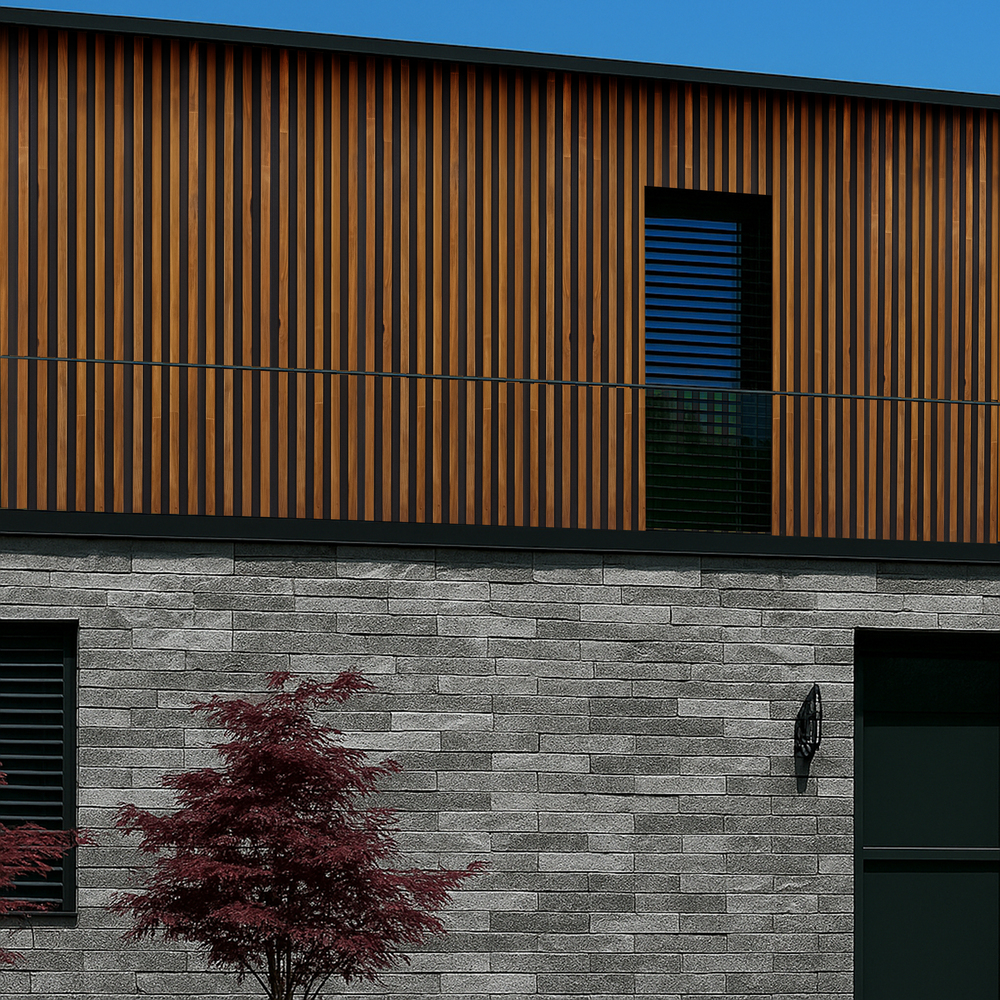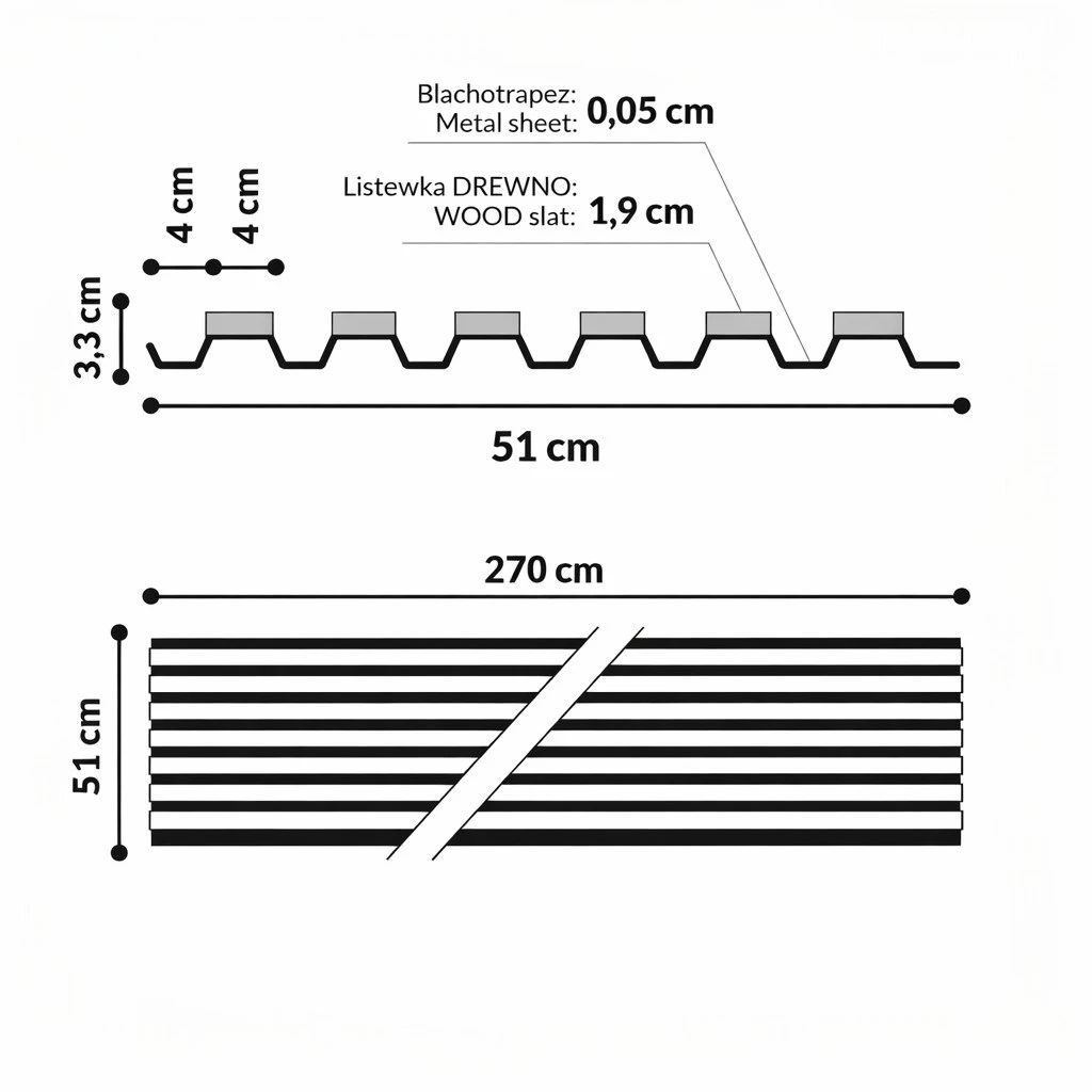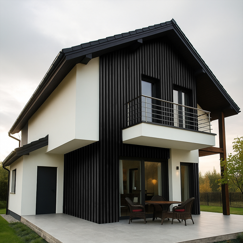 Panele elewacyjne STEELWOOD to kompletne rozwiązanie fasadowe, zaprojektowane z myślą o estetyce, trwałości i precyzyjnym wykończeniu detali. System opiera się na panelach o wymiarze 51 × 270 cm, które można montować zarówno pionowo, jak i poziomo, w zależności od koncepcji architektonicznej.