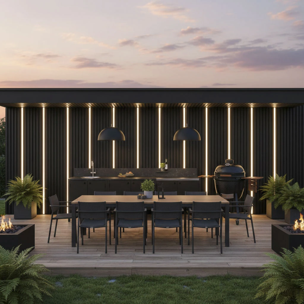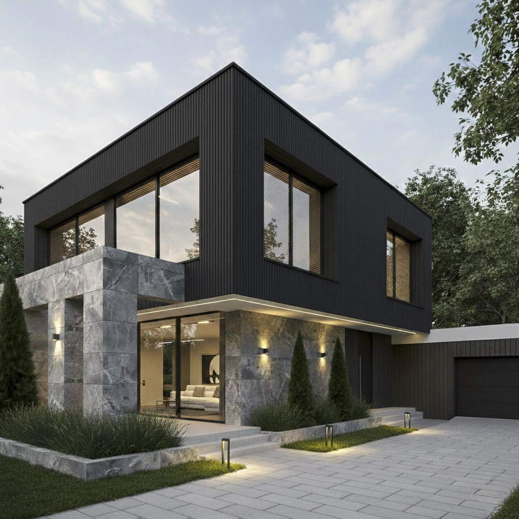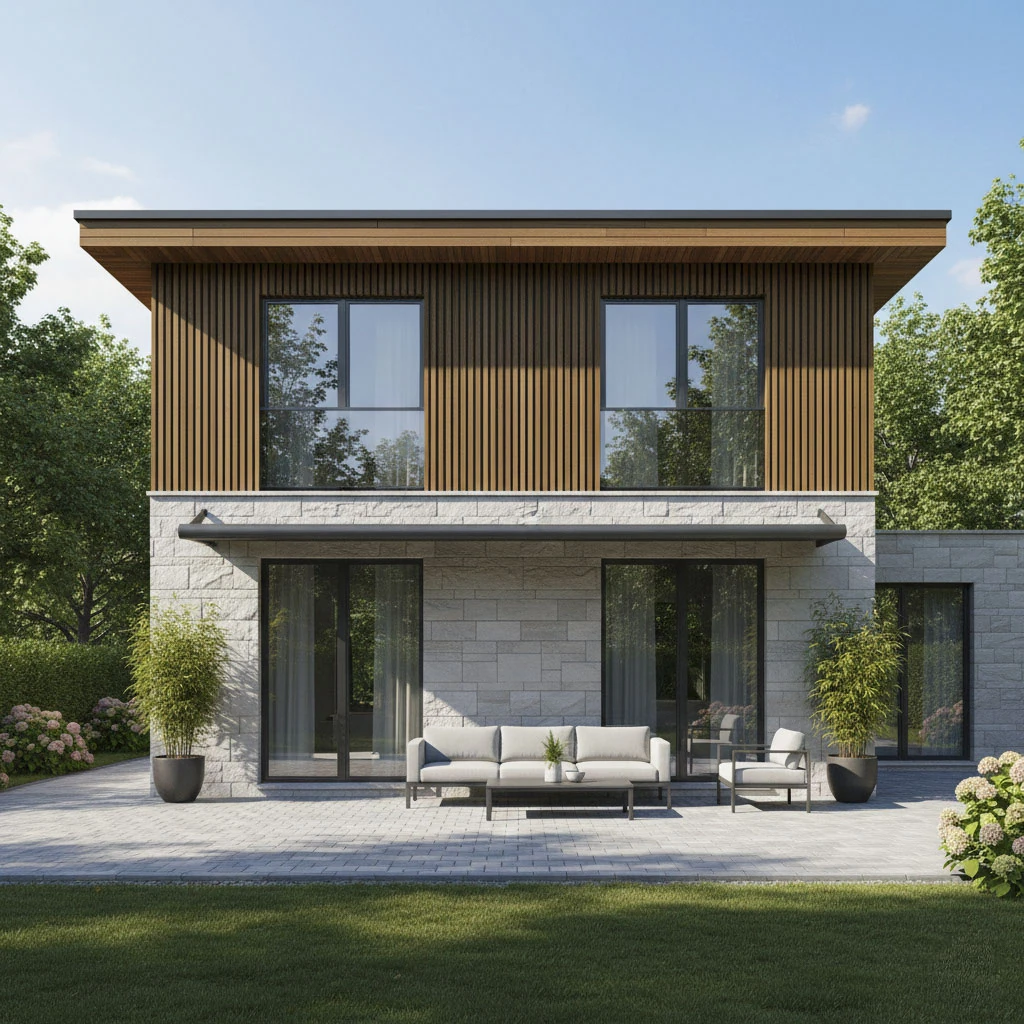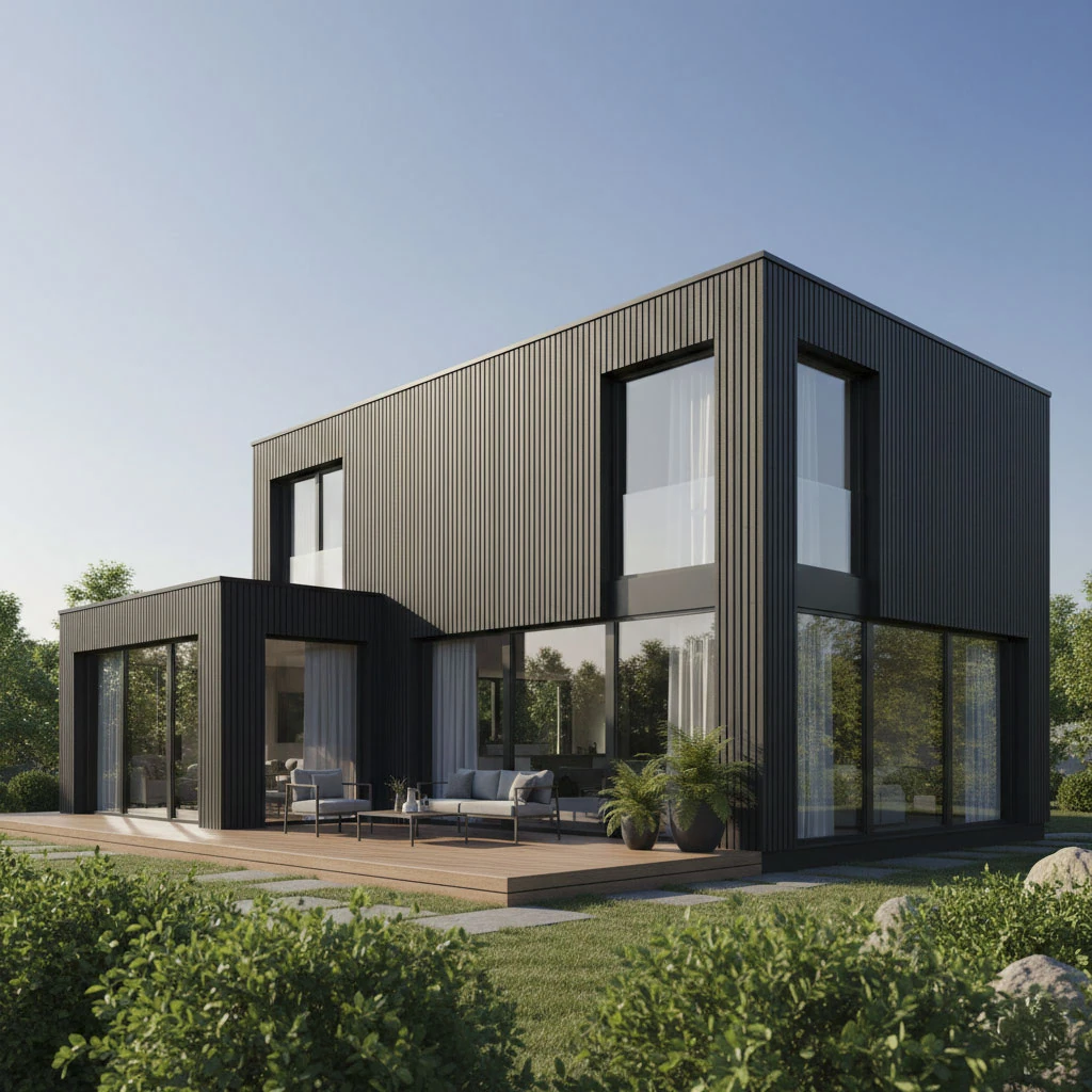 Panele elewacyjne STEELWOOD to kompletne rozwiązanie fasadowe, zaprojektowane z myślą o estetyce, trwałości i precyzyjnym wykończeniu detali. System opiera się na panelach o wymiarze 51 × 270 cm, które można montować zarówno pionowo, jak i poziomo, w zależności od koncepcji architektonicznej.