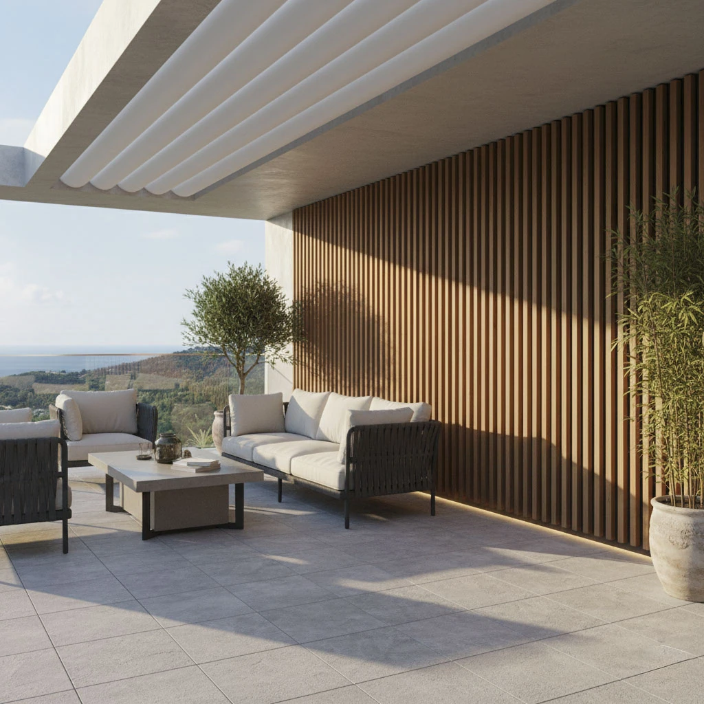 System STEELWOOD dostępny jest w dwóch wariantach kolorystycznych: teak oraz grafit, co pozwala dopasować elewację do nowoczesnych i klasycznych projektów.