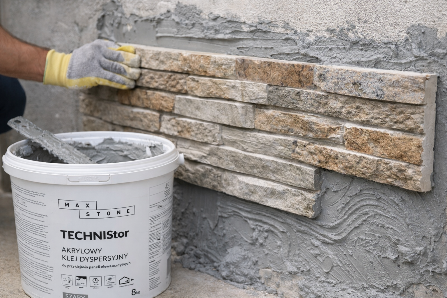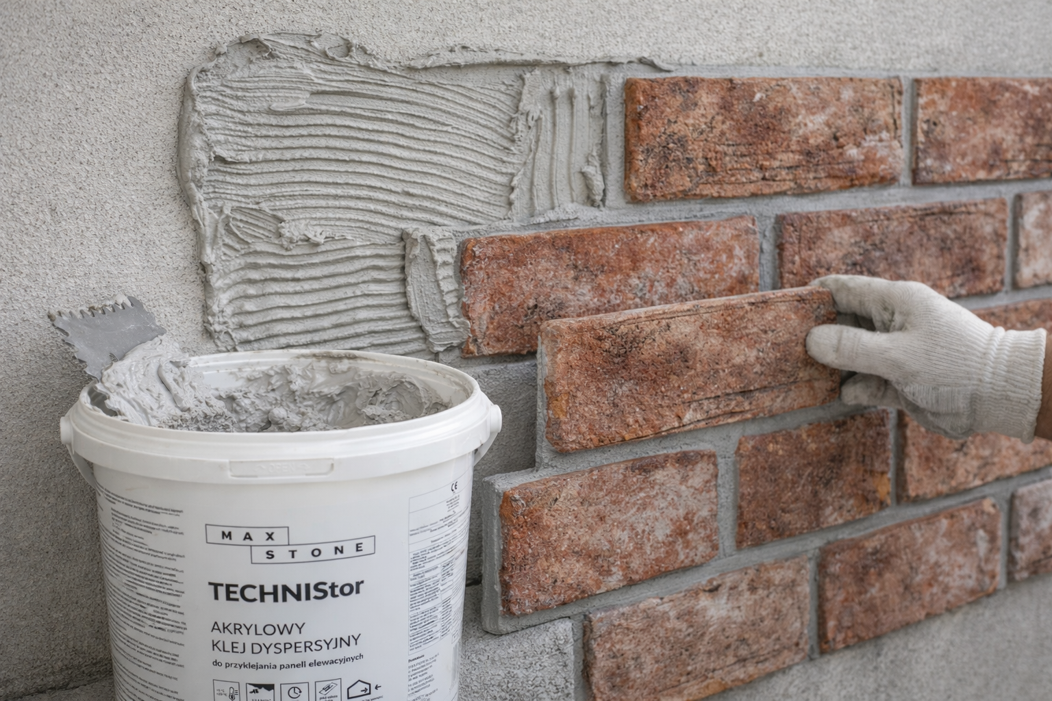 Klej akrylowy TECHNISTOR marki Maxstone to gotowy do użycia, szary klej montażowy przeznaczony do profesjonalnego montażu paneli elewacyjnych oraz cegieł elastycznych. Produkt został opracowany z myślą o trwałych systemach dekoracji ścian, stosowanych zarówno na elewacjach, jak i we wnętrzach.